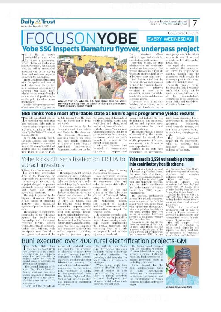 The Yobe State Government has commenced a sensitisation campaign on the Framework for Responsible and Inclusive Land-Intensive Agriculture (FRILIA), as part of efforts to create an enabling environment for investment in the agricultural sector.